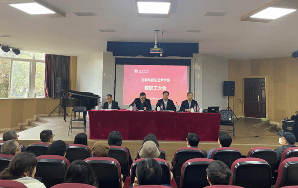 1月11日,学校党委书记马洪江、党委组织部常务副部长杨波到文艺学部调研指导工作,对学部专业发展、师资建设、教学科研等工作提出了意见和建议,文艺学部全体处科级干部、教职工参加了会议。