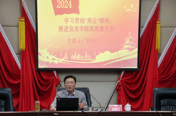 为深入学习贯彻2024年全国两会精神,真抓实干开创学校发展新篇章,4月11日,学校党委书记马洪江在A区图书馆三会议室讲授了主题为《学习贯彻“两会”精神 推进宜宾学院高质量发展》的专题党课。文艺学部处科级干部、教师党员、学生党员及入党积极分子参加了学习。专题党课由文艺学部部长高正伟主持。