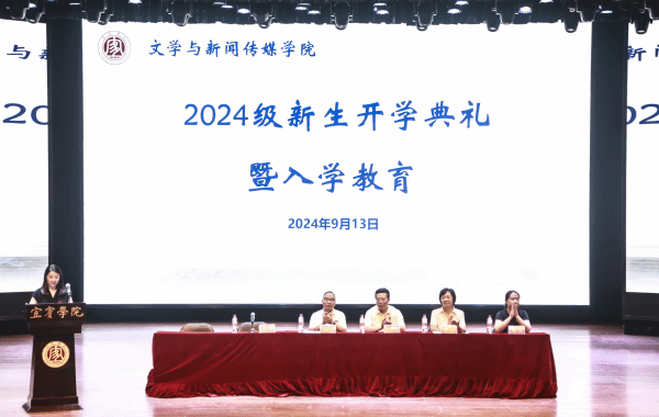 艳阳耀金秋,扬帆启新程,9月13日下午,文学与新闻传媒学院在博雅楼演播厅隆重举行了2024级新生开学典礼。文新学院党委书记、院长高正伟,中国酒史研究中心主任彭贵川,学院正处级组织员董勇辉,党委副书记、副院长张易,学院教师代表及2024级全体新生参加了开学典礼。开学典礼由张易主持。