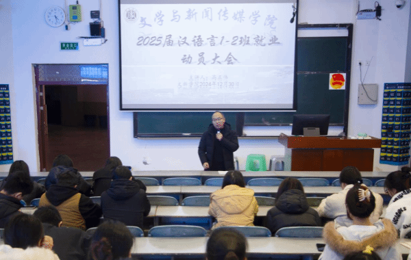 为深入贯彻落实习近平总书记来校视察重要指示精神,落实党中央关于高校毕业生就业工作的决策部署,积极推动2025届毕业生实现高质量就业,12月30日,文学与新闻传媒学院在硕勋楼B102、A203、A102教室同步举行了2025届毕业生就业动员大会。文新学院党委书记、院长高正伟,党委副书记、副院长张易,学工办主任罗立,毕业班班主任和毕业班同学参加了会议。