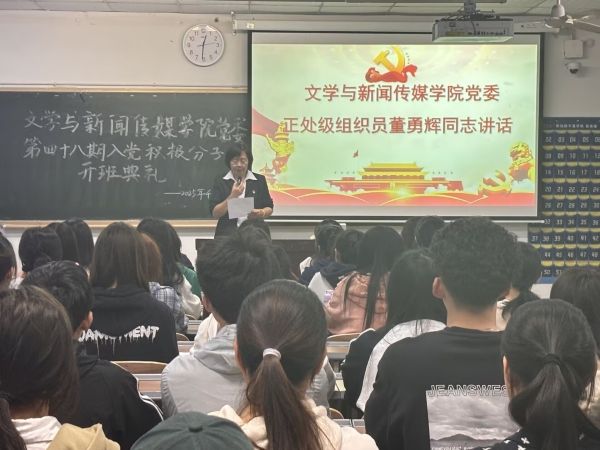 为强化入党积极分子的纪律意识,扎实做好党员发展工作,4月9日中午12:30,文学与新闻传媒学院党委在A区三教101教室举行了第48期入党积极分子培训班开班典礼。文新学院党委书记、院长高正伟,正处级组织员董勇辉,党委副书记、副院长张易,文学与新闻传媒学院学生党支部书记赵翔玥同志,学生党支部委员吴琴同志、凌雨荷同志,第48期入党积极分子培训班3班班主任唐辉同志,第47期入党积极分子培训班全体成员参加了开班典礼。本次开班典礼由赵翔玥同志主持。
