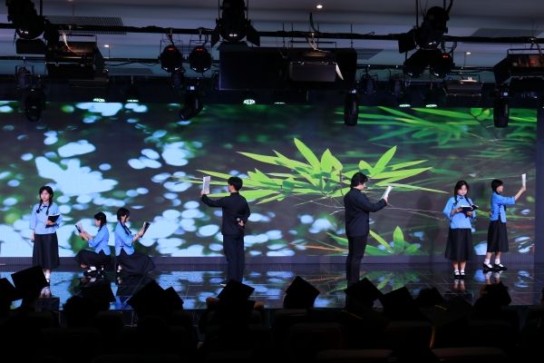 致辞结束,精彩节目依次上演。话剧《栋梁》通过跨时空对话,再现林徽因以文报国的精神传承;合唱《如愿》用动人旋律诉说感恩,父辈奋斗的身影与青春微光交织,铺就温暖而明亮的底色;配乐朗诵《读中国》,在文字间回溯五千年文明血脉,在诵读中厚植文化自信;弦歌吟诵《定风波》,借东坡先生的豁达,传递直面命运挑战的力量。当《凤凰花开的路口》熟悉旋律响起,校园记忆与离别思绪交融,掌声与歌声交织成青春的混响。晚会在观众们的合唱中落下帷幕。