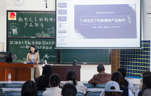 讲座围绕新媒体的定义、新形势下的新媒体产品、新媒体产品的分类、如何做好新媒体产品四个方面的内容展开。李美琪分析了当下新媒体的现状,指出了新媒体行业人才必须具备的基本技能,并结合自身工作经验和实践案例,深入浅出地阐述了新媒体产品制作中新闻价值的抓取、标题文案的撰写、视频制作等方面的技巧。她强调,制作新媒体产品时要抓住事件最大的亮点,适当增加细节描述,突出典型性,增强可读性和吸引力。李美琪还针对大学生就业提出了建议,她鼓励同学们树立就业信心,不断夯实专业基础,努力提升新媒体技能。
