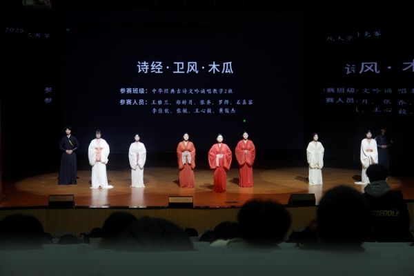 本次比赛通过吟诵唱演绎中华经典诗文,让师生在声韵流转中感受千年文脉,体悟诗情雅意。各参赛团队不仅注重对诗歌的理解与表达,更在吟诵形式、音乐配合、舞台呈现上进行了创新融合,让沉睡在典籍中的文字焕发出鲜活的生命力,实现经典在当代青年的对话中的传承。