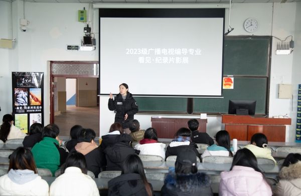为集中展示专业课程教学成果,搭建专业实践交流平台,1月9日上午,文学与新闻传媒学院《纪录片创作》作品交流会——“看见·纪录片影展”在硕勋楼A301顺利举办。宜宾学院教育教学质量评估中心专职教学督导员杨南翎,文新学院副院长罗红昌,讯影传媒公司总经理夏凌波,广播电视编导专业教师及学生代表参与活动。