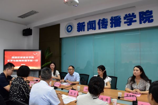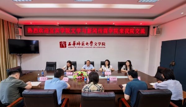 6月26日上午,高正伟一行到访西华师范大学新闻传播学院。在参观完新传学院实验室和观看学生非遗作品之后,双方展开座谈。座谈会上,西华师范大学新闻传播学院院长陈勇和宜宾学院文新学院党委书记、院长高正伟对各自学院的历史沿革、专业发展、业界实践等方面进行了全面介绍。双方围绕新闻传播学专业的学科建设、课程建设、实习基地建设、学生就业保障等议题展开了热烈讨论。双方表示,将进一步加强交流与合作,共同探索新闻传播人才培养的新模式,为传媒行业输送更多优秀人才。