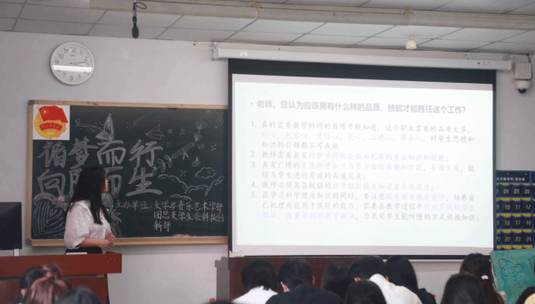 为帮助同学们明确学习目标与发展方向,更好地制定今后的职业生涯规划,5月18日,文艺学部在硕勋楼202教室举办了“循梦而行 向阳而生”职业访谈活动决赛。文艺学部学生会主席王雪、聂比,科创部部长陈兴蕊,学资部副部长谭容,组织部副部长李亚茹参加活动并担任评委。