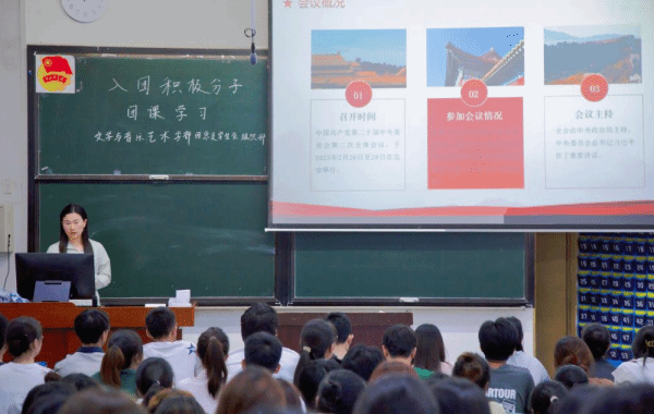 赵翔玥围绕“如何做新时代合格团员”进行讲解,阐述了共青团的使命与性质。她强调,新时代的共青团员要严格履行团员义务,时刻规范自己的行为举止,做崇德向善、严守纪律的模范。胡漩怡以“青春逢盛世,奋斗正当时”为主题,讲解了新时代青年的新使命,提出了对思想觉悟和综合素质的要求,使同学们对自己的发展目标有了更明确的认识。杨莹玲则围绕党的二十大精神,详细解读了党在新时代的指导思想和方针政策,并结合青年人的特点和使命,探讨了如何在新时代中砥砺奋进、坚守初心。最后,吴琴为同学们讲解了五四精神的内涵,激励入团积极分子们向党组织靠拢,为实现中华民族伟大复兴的中国梦贡献青春力量。