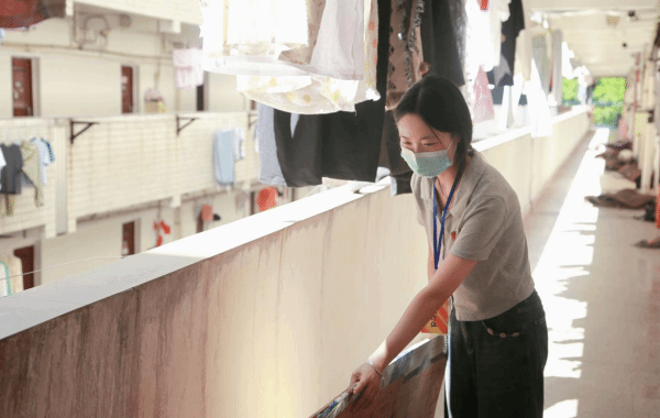 酷暑难耐,学生干部们以身作则,认真开展工作。在卫生清扫过程中,大家分工明确,有条不紊地进行清扫,有的负责扫地擦窗,清除灰尘与蛛网;有的则细心整理床铺,摆放好每一件生活必需品,力求每一个细节都能体现出家的温馨与整洁。同时,他们还认真检查了寝室设施,记录下存在的问题并进行了报修。经过大家共同的努力,新生寝室焕然一新。