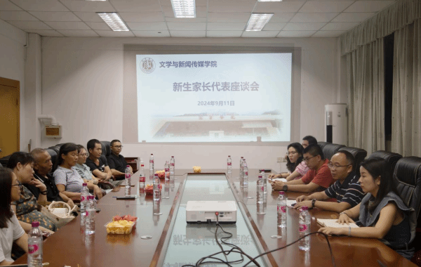 为加强家校沟通,共促学生成长,9月11日,文学与新闻传媒学院在413会议室召开了2024级新生家长座谈会。学院党委书记、院长高正伟,党委副书记、副院长张易,学工办主任罗立、2024级辅导员及新生家长代表参加了会议。