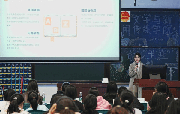 为增强大学生职业规划意识,树立正确的择业就业观,提升就业竞争力,11月6日中午,文学与新闻传媒学院在硕勋楼A203举办了大学生职业生涯规划大赛初赛。本次比赛由文新学院学工办主任罗立,第六届创新创业导航名师巫颖以及凌雨荷、王红梅、唐纯丽、吴琴四位老师担任评委。