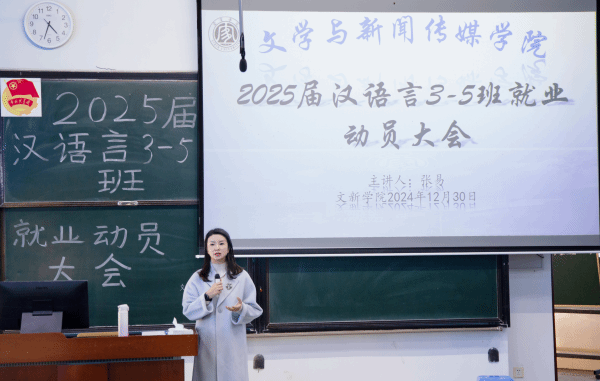 为深入贯彻落实习近平总书记来校视察重要指示精神,落实党中央关于高校毕业生就业工作的决策部署,积极推动2025届毕业生实现高质量就业,12月30日,文学与新闻传媒学院在硕勋楼B102、A203、A102教室同步举行了2025届毕业生就业动员大会。文新学院党委书记、院长高正伟,党委副书记、副院长张易,学工办主任罗立,毕业班班主任和毕业班同学参加了会议。