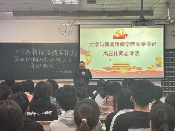 为强化入党积极分子的纪律意识,扎实做好党员发展工作,4月9日中午12:30,文学与新闻传媒学院党委在A区三教101教室举行了第48期入党积极分子培训班开班典礼。文新学院党委书记、院长高正伟,正处级组织员董勇辉,党委副书记、副院长张易,文学与新闻传媒学院学生党支部书记赵翔玥同志,学生党支部委员吴琴同志、凌雨荷同志,第48期入党积极分子培训班3班班主任唐辉同志,第47期入党积极分子培训班全体成员参加了开班典礼。本次开班典礼由赵翔玥同志主持。