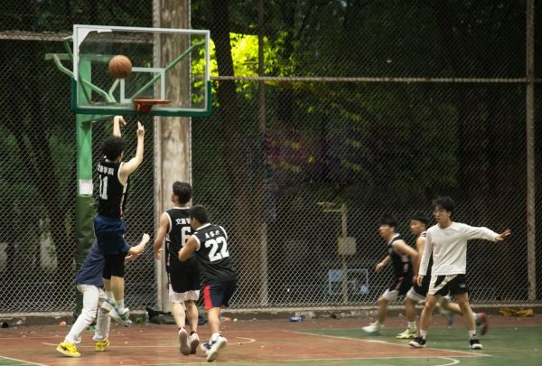 为弘扬体育精神,丰富校园文化生活,4月12日晚,文学与新闻传媒学院与教师教育学院在二平台风雨球场共同举办了“青春无畏,以球会友”篮球交流赛。