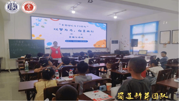 安全教育课上,志愿者围绕交通安全、消防安全、用电安全、预防溺水、居家出行、饮食安全六大板块开展 “暑期安全教育第一课”,通过情景模拟、动画演示等形式,让孩子们在轻松互动中掌握自我保护技能。诗词课堂上,志愿者以曹文轩的《根鸟》为切入点,结合经典诗词中的自然意象与成长主题,带孩子们从文学中汲取奋进力量。音乐课堂上,志愿者带领孩子们学唱《外婆的澎湖湾》,引导他们在旋律中感受亲情与自然之美。