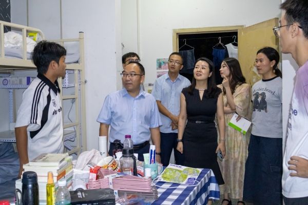 为深入了解2025级新生入学适应情况,营造和谐的育人环境,9月11日,文新学院党委书记、院长高正伟,党委副书记、副院长张易,学工办主任何宾及2025级辅导员深入学生寝室,开展新生走访活动。