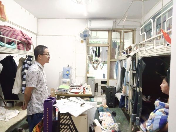 为进一步强化学生宿舍管理,了解学生学习生活情况,9月19日,文学与新闻传媒学院党委副书记、副院长张易,学工办主任何宾带领全体辅导员、班主任和学生干部走访了文新学院所有学生寝室,关心同学们的学习生活情况,并对寝室安全、卫生状况进行了检查。