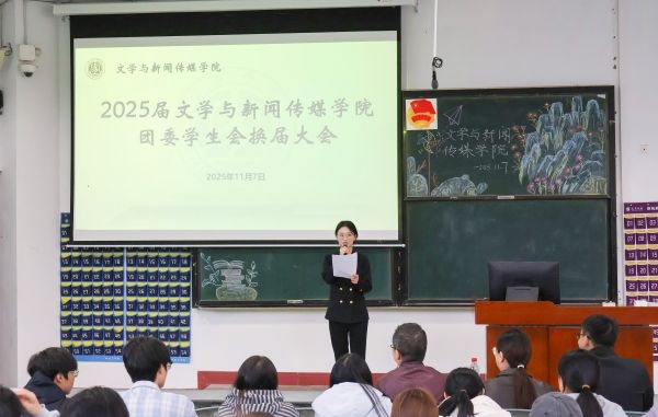 为进一步强化学生干部队伍建设,充分发挥团委学生会的桥梁和纽带作用,11月7日,文学与新闻传媒学院于硕勋楼A103召开了2025届团委学生会换届大会。学工办主任何宾,学工办辅导员吴琴、赵翔玥、侯尧,团委学生会干部及干事代表参加了会议。