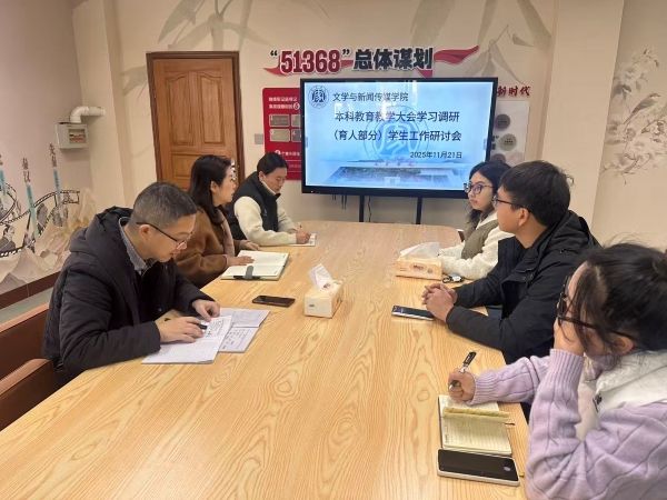 为梳理学生工作思路,扎实推进本科教育教学高质量发展,11月21日,文学与新闻传媒学院召开本科教育教学(育人部分)学生工作研讨会。文新学院党委副书记、副院长张易主持会议,学工办全体辅导员参加会议。