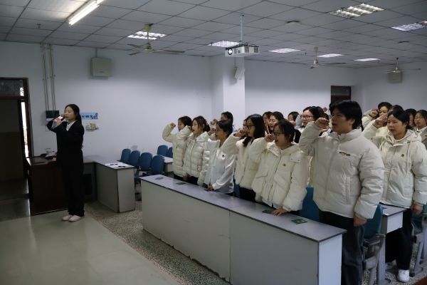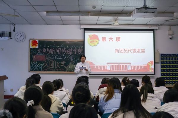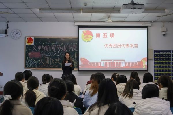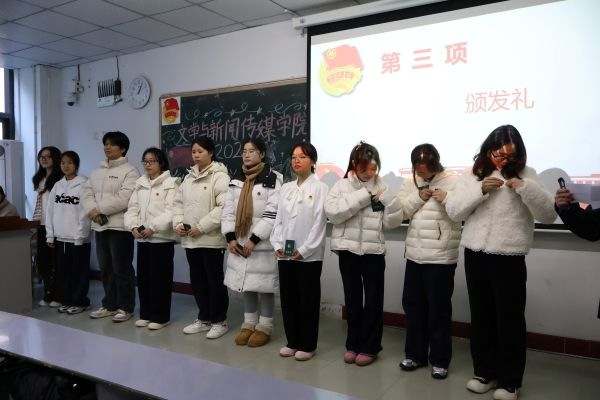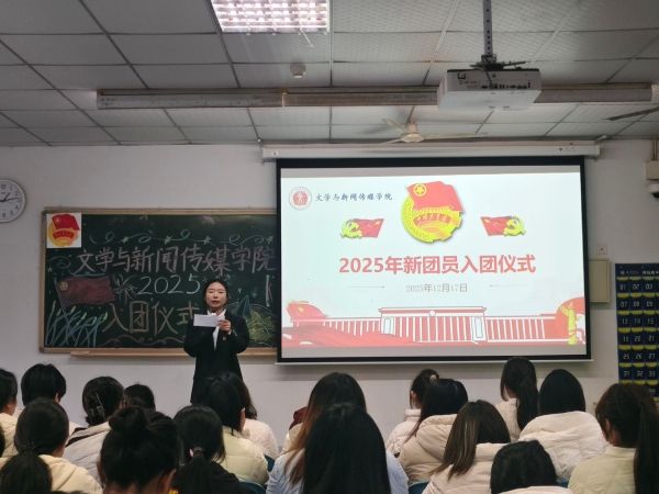 为扎实推进基层团组织规范化建设,吸收先进青年加入中国共产主义青年团,12月17日,文学与新闻传媒学院在三教305举行了2025年新团员入团仪式。优秀团员代表及41名新团员参加仪式。