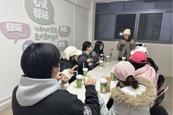 活动伊始,一系列破冰游戏迅速点燃了现场气氛。同学们通过“谁在喝盐水”“拼接诗”等趣味挑战拉近了彼此距离,在欢声笑语中放松了心情。随后,活动进入“茶语分享”环节。在悠扬的音乐与清幽的茶香中,同学们围坐在一起,敞开心扉,畅谈学业上的挑战、生活中的困惑以及对未来的展望。分享过程中,大家互相倾听、给予建议,让情绪在对话中得到理解和释放。