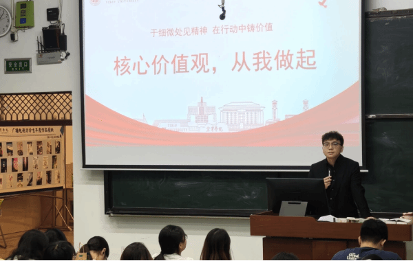 班会紧扣“于细微处见精神,在行动中铸价值”理念,辅导员围绕学习、安全、纪律、生活四大维度,结合校园日常开展讲解。辅导员深入解读自觉、自省、自律、自查、自纠“五自”内涵,并带领同学们学习社会主义核心价值观,推动其内化于心、外化于行。各班通过讲述英烈事迹、倡导红色文化传承,厚植学生爱国情怀。同时,班会上重点强调了校园“四禁”、寝室用电及人身财产安全事项,引导学生熟知校规校纪、严守行为规范。