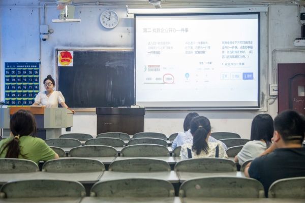 赵翔玥详细地讲解了公司注册流程及国家和地方对大学生创业的扶持政策,鼓励有创业意向的同学充分利用这些政策资源,为自己的创业之路保驾护航。胡漩怡分享了关于简历制作的实用技巧,强调简历内容要采用清晰简洁的表述方式、凸显个人特长、量化个人成果。